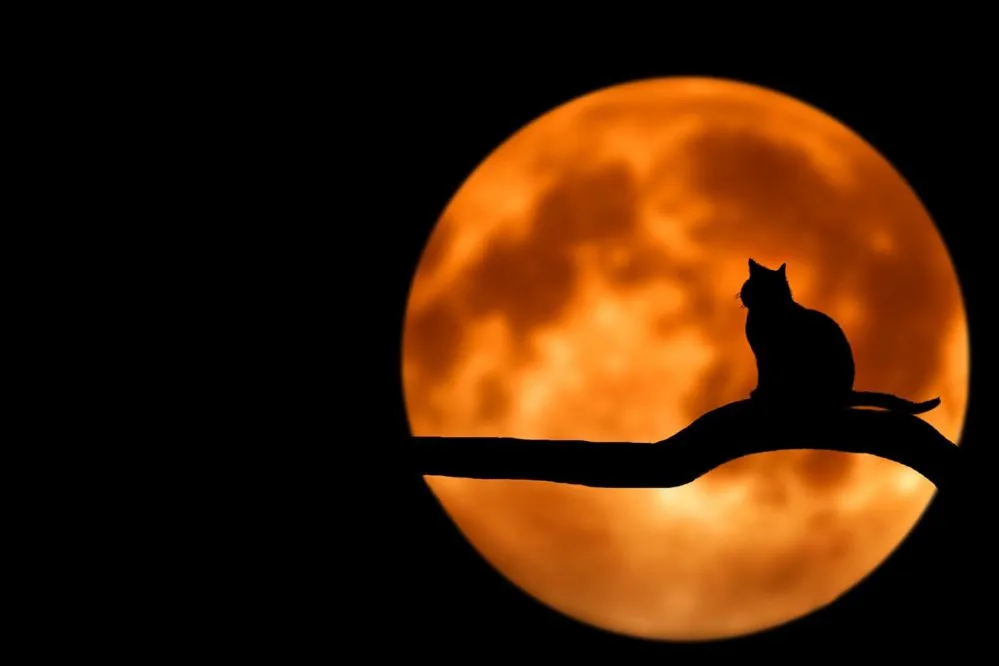 月亮上有貓咪的剪影/出自 Pexels