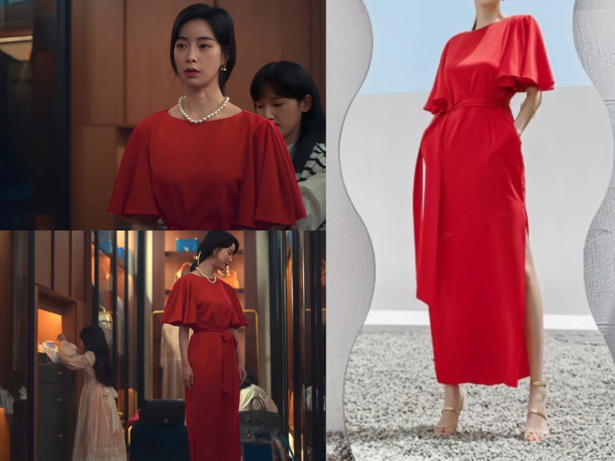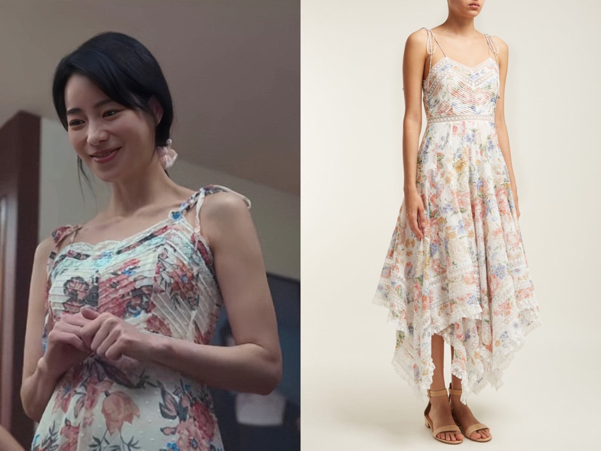 《黑暗榮耀》朴涎鎮名媛穿搭:細肩細摺連身裙-Zimmermann/室內鞋-ELCANTO