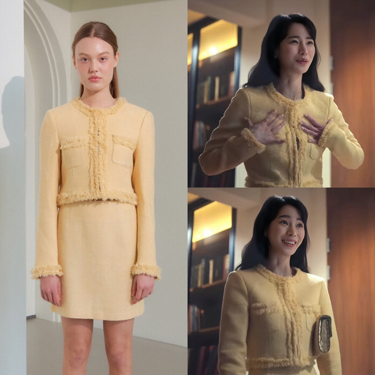 《黑暗榮耀》朴涎鎮名媛穿搭:黃色流蘇花呢套裝-vem.ver