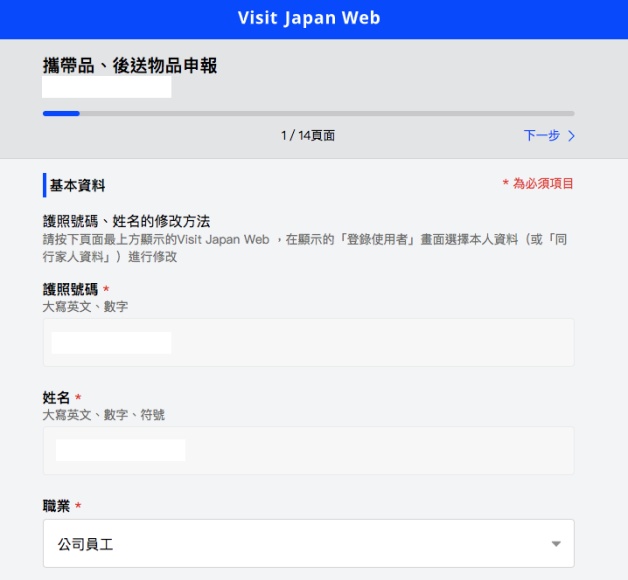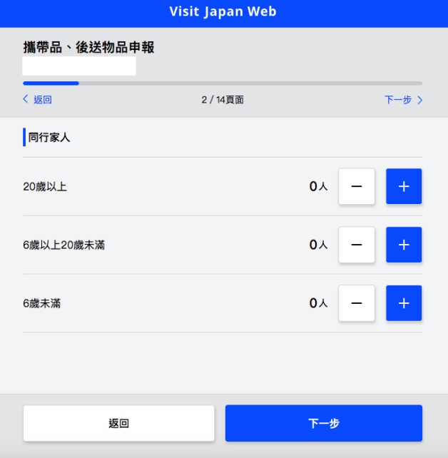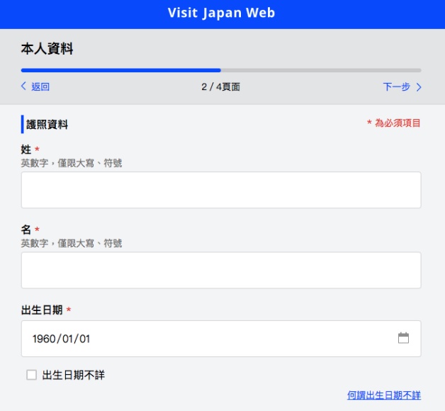 登錄使用者可分為「本人資料」和「同行家人資料」,填寫護照資料,包含姓名、出生日期、國籍、性別、護照號碼,如果有同行家人,返回本人資料頁面即可繼續填寫!