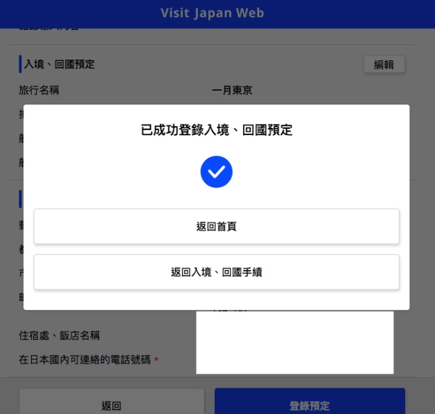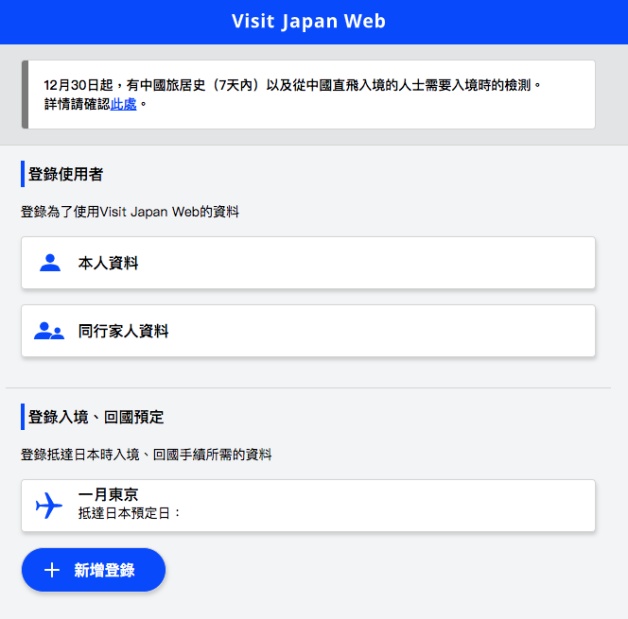 如果還有其他日本行程,可以再「新增登錄」!
