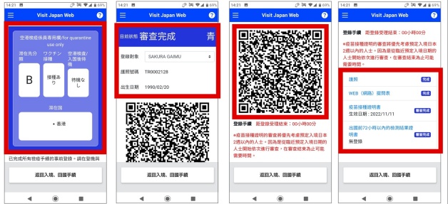 入境檢查順序依序為,一向工作人員出示「檢疫手續事前登錄」即可取得粉色Health Card,二為「入境審查準備」出示QRcode給海關人員,脫口罩拍照按壓指印,三為「海關申報準備」在機台出示QRcode和護照,確認資料無誤就可以入境,接下來就是大玩特玩啦!
