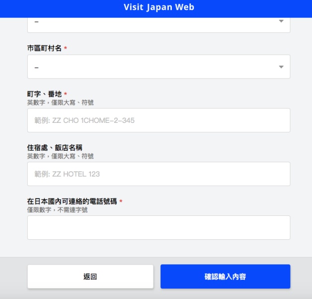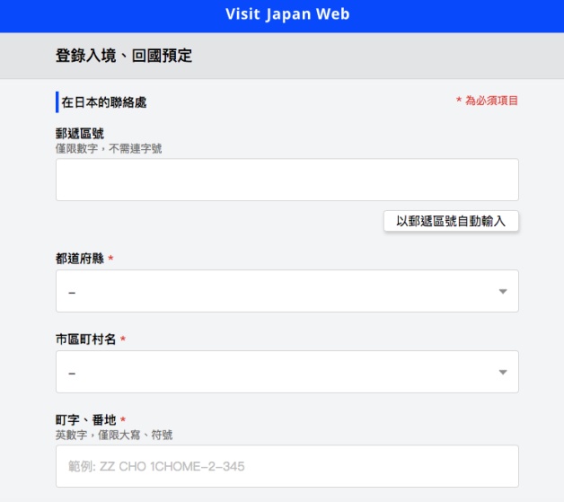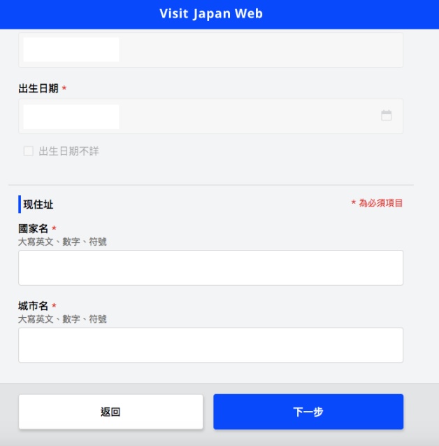 如果已經登錄使用者,那「外國人入境資料」系統會自動加入基本資料,妞妞們僅需填寫現住址「國家名」和「城市名」(一定要填不然會卡關),之後就會到入境頁面!