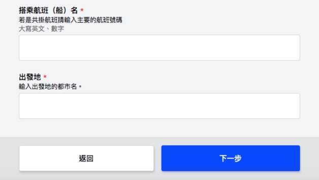 如果已經登錄使用者,「攜帶品、後送物品申報」系統也會自動加入基本資料,妞妞們僅需填寫「搭乘航班名」和「出發地」,並如實回答申報即可!