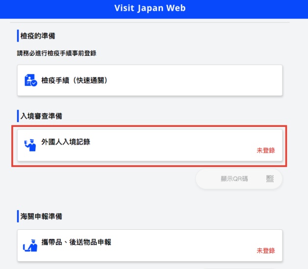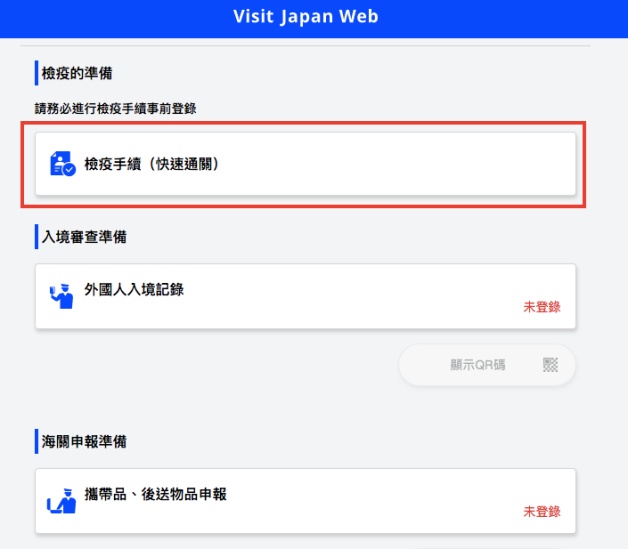 全部完成後,在入境前妞妞們就需要準備以下資料頁面,分別為「檢疫手續事前登錄」、「入境審查準備」、「海關申報準備」,要出現「已登錄」才算完成喔!