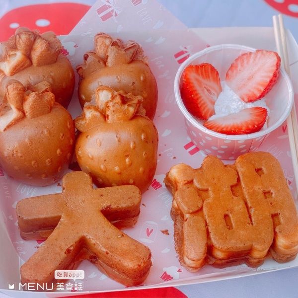 早餐來點有特色的!hen厚食是客語發音的很好吃。有著大湖字樣以及可愛草莓造型的雞蛋糕,內餡為草莓果醬,一份有六顆,皆為現點現做。