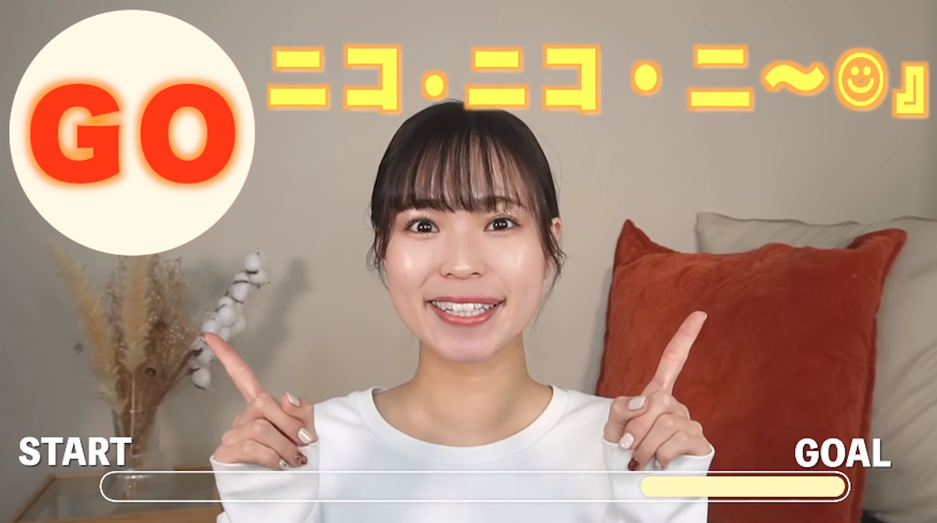 露齒笑誇張地講出「呢個呢個呢~」延伸嘴角,重複7次。