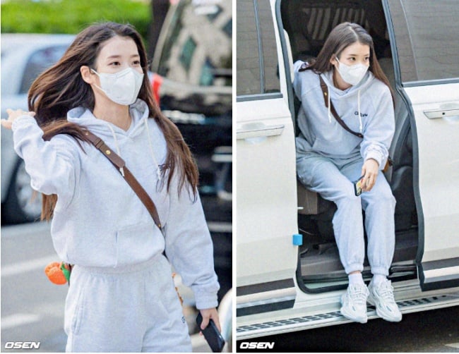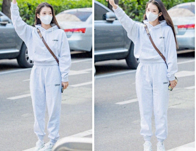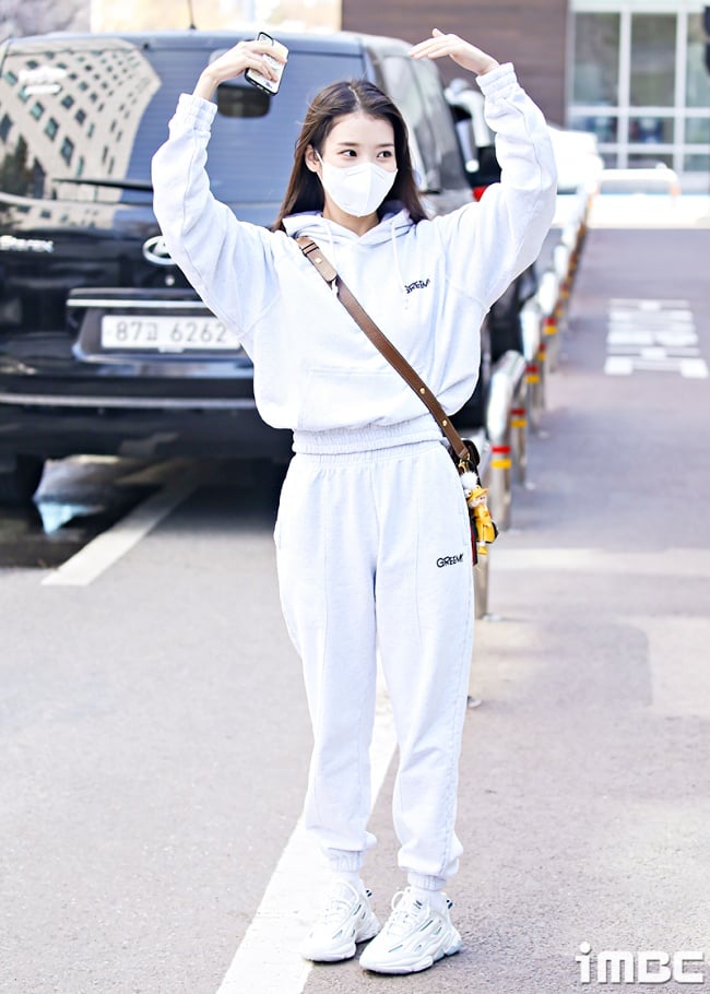 私服熱愛「怎麼輕便怎麼穿」(?)的IU,也被目擊穿著休閒棉質套裝走上班路,他選擇的是白灰色的連帽上衣、棉褲,原本已經很少女,馬上又減齡5歲,之前也曾穿著「小雞黃」的整套New Balance拍照上傳IG,推薦小個女孩可以效仿IU女神挑選「上衣短版」或是「繽紛色系」的款式,能讓短身比例更好、視覺上自帶亮點~
