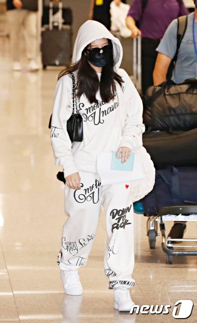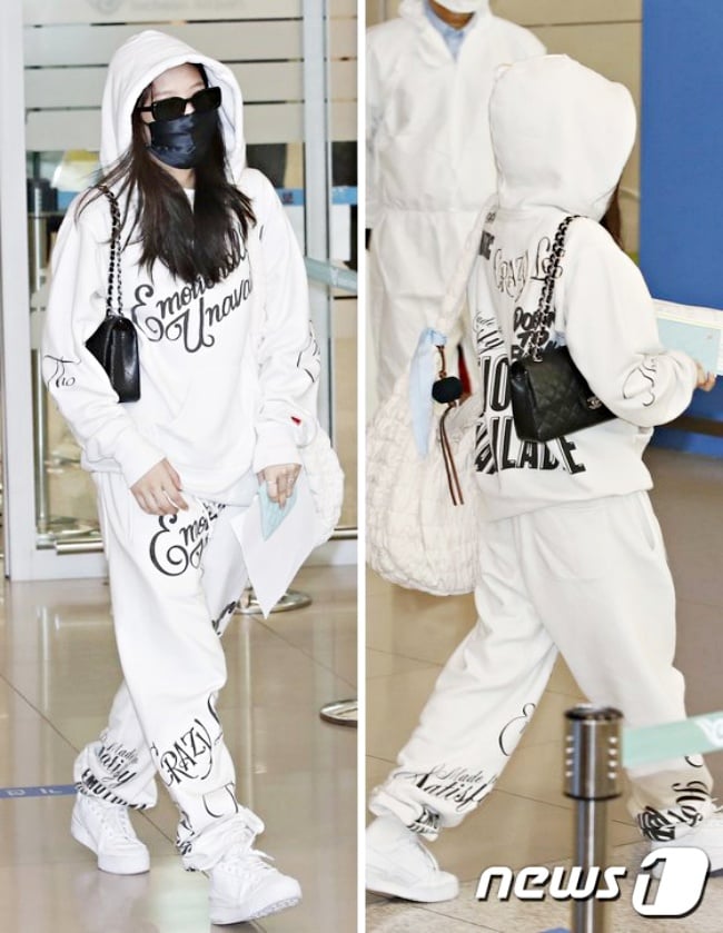 近年的大勢「套裝」,換成運動、休閒風格的棉質版本,就是把舒適指數拉到最滿、卻依舊緊跟潮流的最佳選擇!看看「人間香奈兒」、「時尚指標」BLACKPINK成員Jennie有多愛就知道,不管是帽T+棉褲或棉T+棉褲,常常看他穿整套現身機場,這2套都選擇「奶油白款式」,混搭一顆精品包就是Jennie風格(笑)。