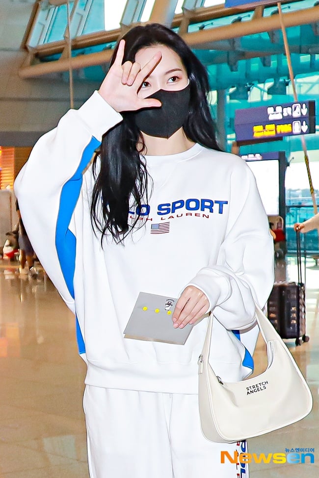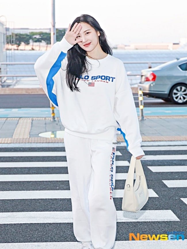 感受一下什麼是「一套就是目光焦點」…宣美從休閒棉質套裝到鞋款、包包,通通以奶油白+天空藍統一色系,清爽的配色在一片黑壓壓的秋冬,絕對是最亮眼的清新小姊姊!