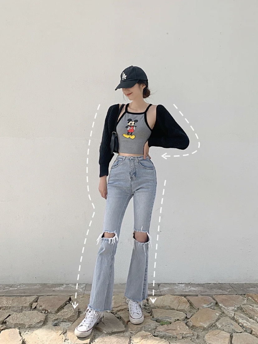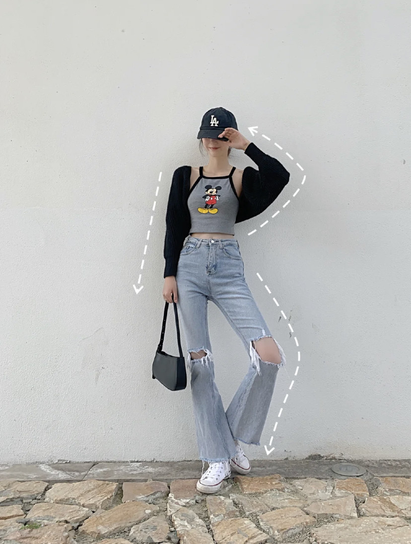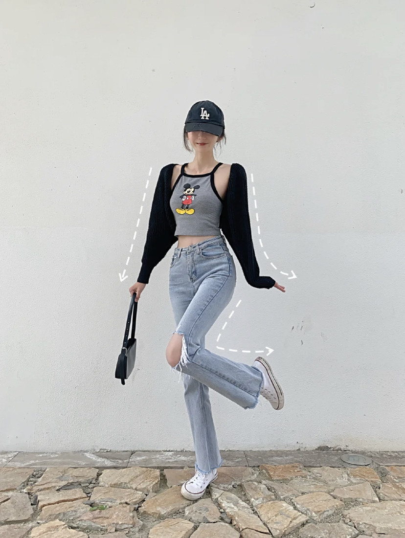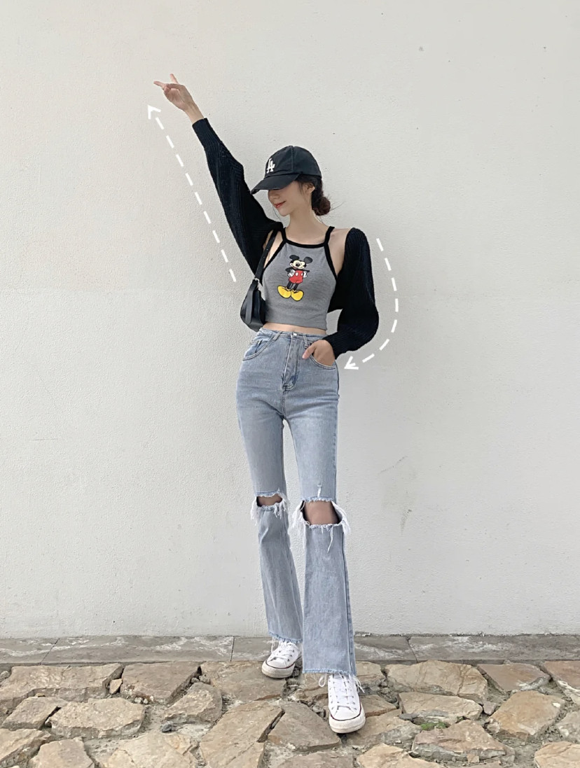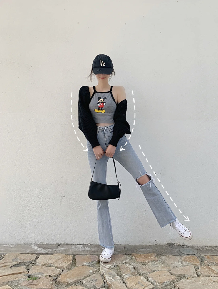顯瘦拍照姿勢1:翹腳雙手向外擺