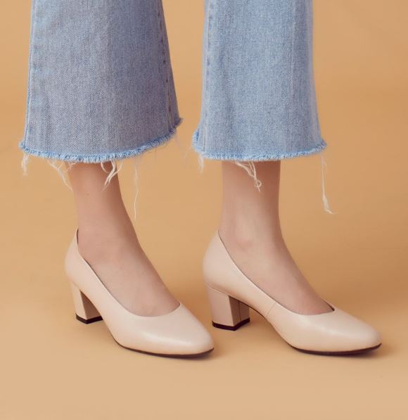 小個子女孩想讓自己看起來有點份量,選擇有點跟的鞋款,不僅可以讓整體身材比例看起來變好,走起路來有自信,感覺工作也會很順利。這雙小方頭中跟鞋設計超簡約,是跟鞋中的基本款,穿著它上班絕對不會出錯,且相當百搭,另外搭配圓滑的杏仁鞋頭設計也讓穿著舒適度更升級。