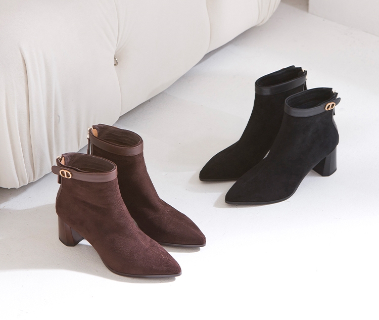 杏仁鞋頭鞋推薦五:質感絲絨粗跟靴