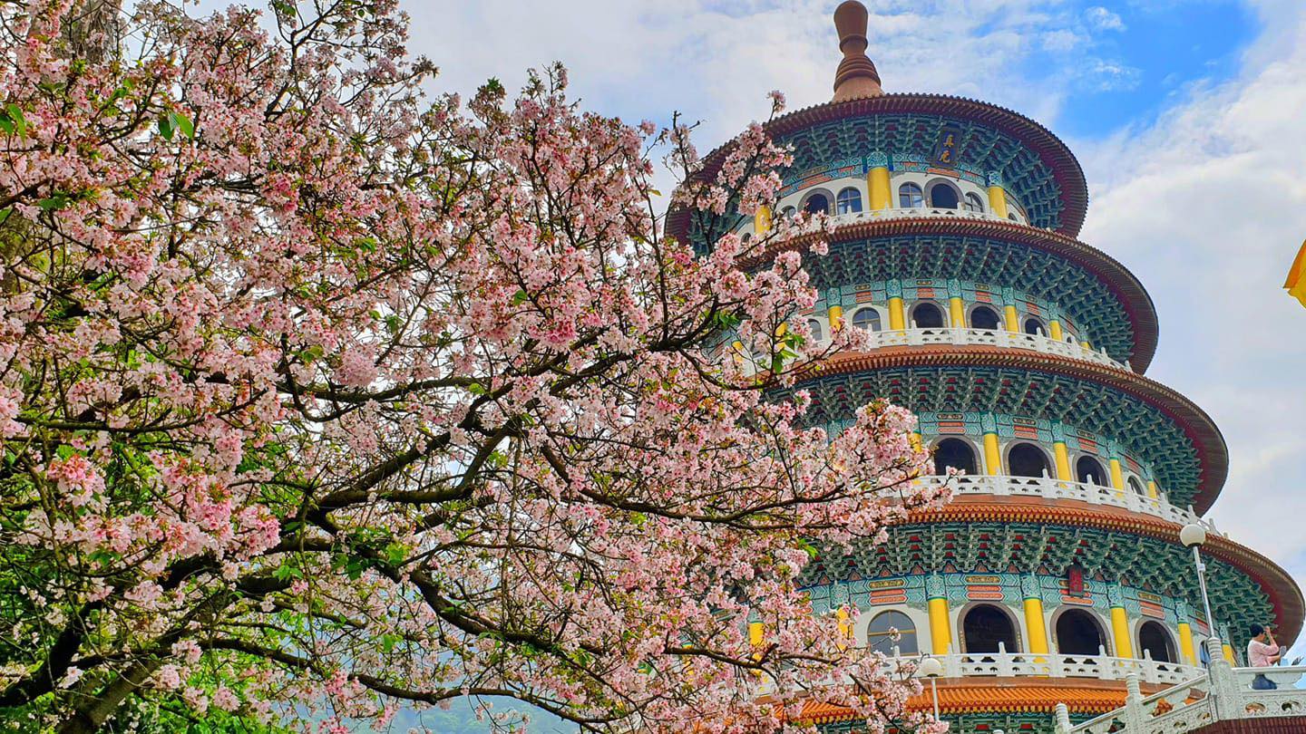 說到北部的賞櫻聖地,當然不能錯過淡水的天元宮啦!後山的三色櫻、天壇的吉野櫻綻放著白、粉、桃的三色櫻花,晚上8點半後每十分鐘將會有一場燈光秀呢~不過,目前僅天元宮後山有開三色櫻,宮內種植面積最多的吉野櫻尚未開花,妞妞們可以等三月開花後再前往,或是隨時關注淡水天元宮花況報導粉絲團喔。