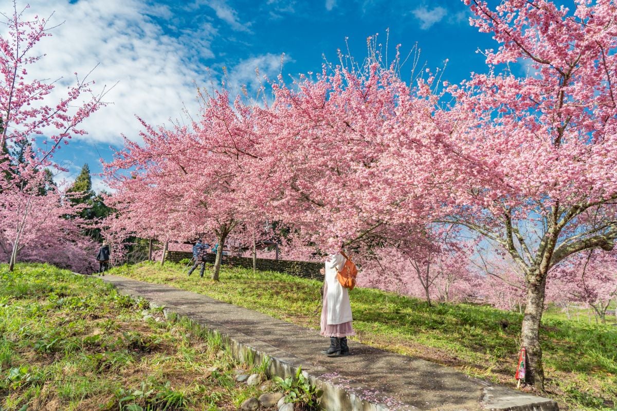 而最著名的「千櫻園」將於2月14日浪漫開園,預估粉紅櫻花賞花期從2月中旬持續到3月初,接著換白色系櫻花賞花期3月中旬到3月底,最後特殊品種櫻花賞花期於4月初至4月中旬。