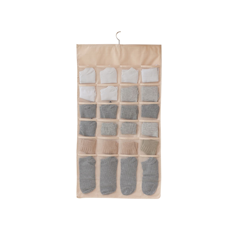 襪子總是越穿越少?常常找不到另外一隻襪子嗎?襪子沒有消失,只是沒有好好地將襪子做收納。吊掛式多功能收納袋更靈活的運用空間,將洗好的襪子依顏色排序放入袋中,每天早上要穿襪子,就不會慌亂找不到啦!顏色有出卡其色、灰色、粉紅色任君挑選。