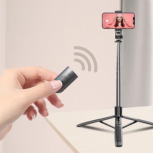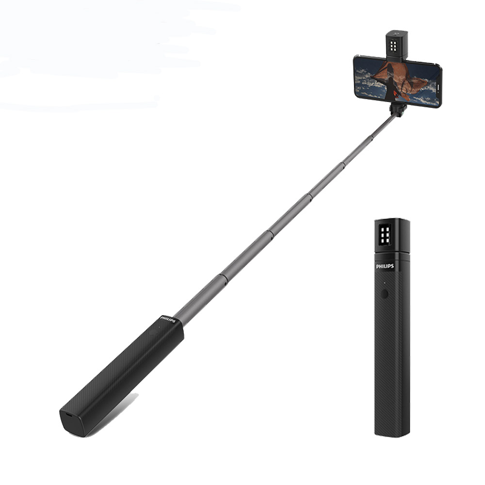 收縮長度最小只有20公分,長桿分為六段式,最長可達59公分,附有磁吸式補光美顏燈,護機軟矽膠機身夾,有270度角度可旋轉,使用藍芽相連超方便!可以相容市面上99%常見手機機型,一鍵即可拍;且重量極輕,僅142克,隨身攜帶也不負擔!