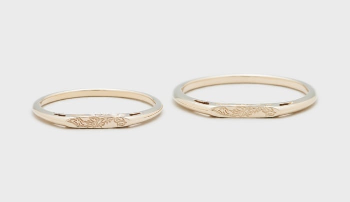 日本的輕珠寶品牌agete(阿卡朵)帶點歐洲典雅感、精緻又實搭的飾品系列受到不少女生喜愛,細膩的設計細節也讓戒指遠看近看都有特色,在情人節前妞妞們如果想跟另一半戴上一樣的定情信物的話,這款不會太搶眼但是細節線條圖形都能展現巧思的對戒很推薦參考看看!