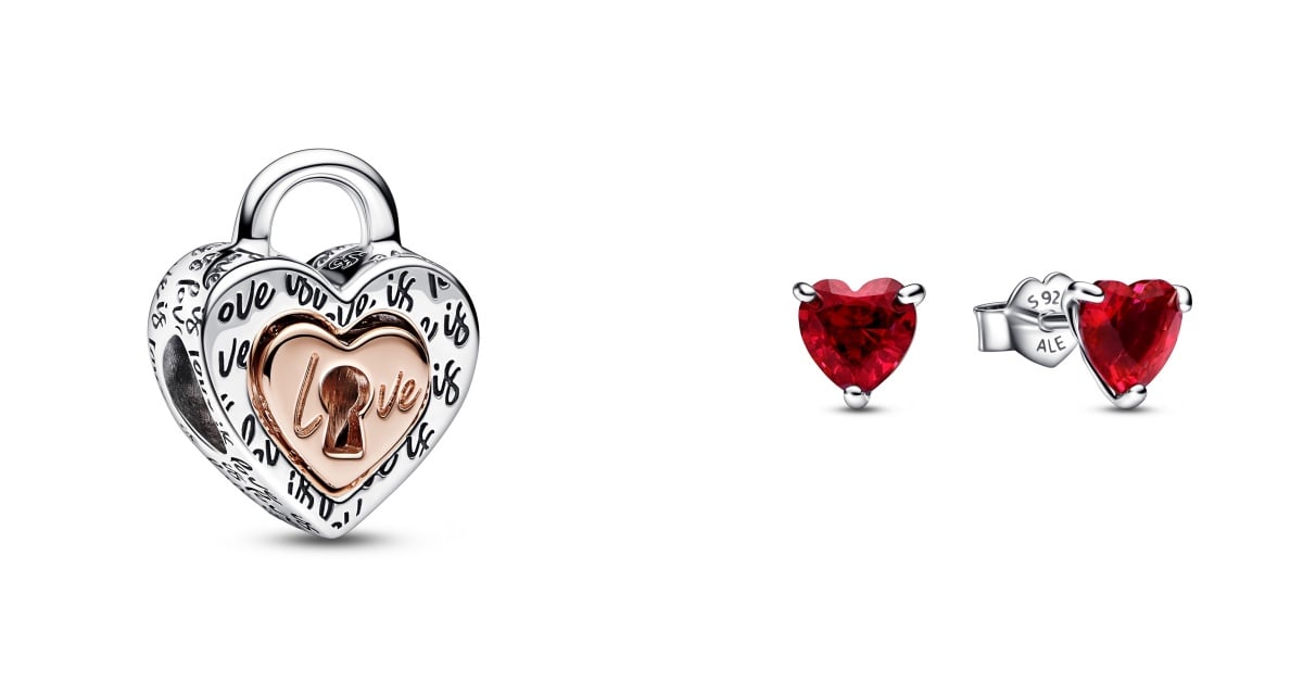 Pandora Moments雙色可分拆心形掛鎖串飾 NT.2,480、Pandora Timeless情人節系列紅心針式耳環 NT.2,480