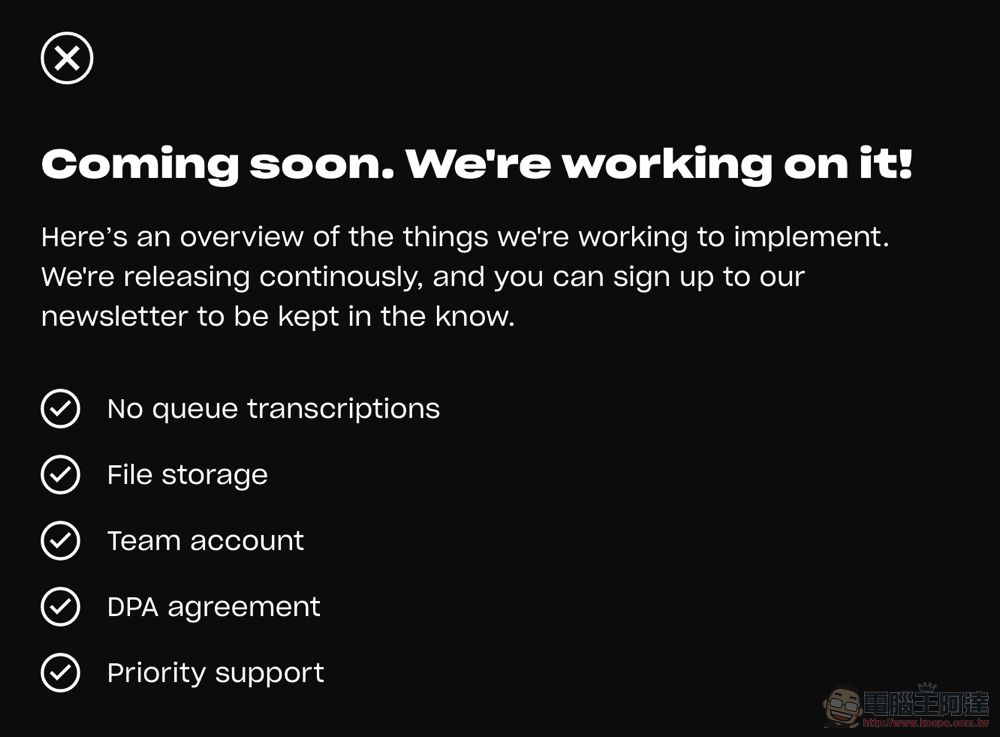 即便如此,我們還是提醒真的很敏感甚至是有簽保密合約即怕洩露的語音檔案,還是留在自己的本地端比較好。此外,Good Tape 還有規劃更快速無需排隊會優先處理的專業版本,就有提到會簽署 DPA 的相關合約提供更進階的保障。所以如果後續真的覺得需要以此服務處理更敏感資訊的朋友,也可以等等看未來的更新。