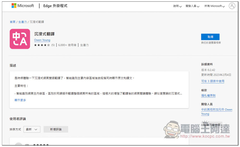 「沉浸式翻譯」擴充功能支援 Microsoft Edge、Chrome 以及 Firefox 瀏覽器,這邊我以 Edge 為範例,操作都一樣。