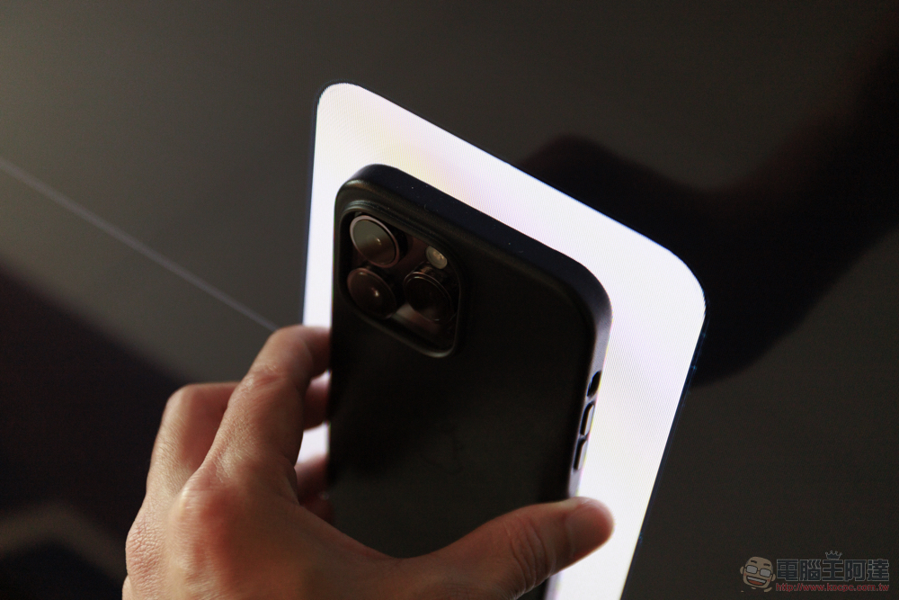 簡單將 iPhone 正面螢幕貼上電視螢幕,就會開始進行色彩平衡的工作囉:
