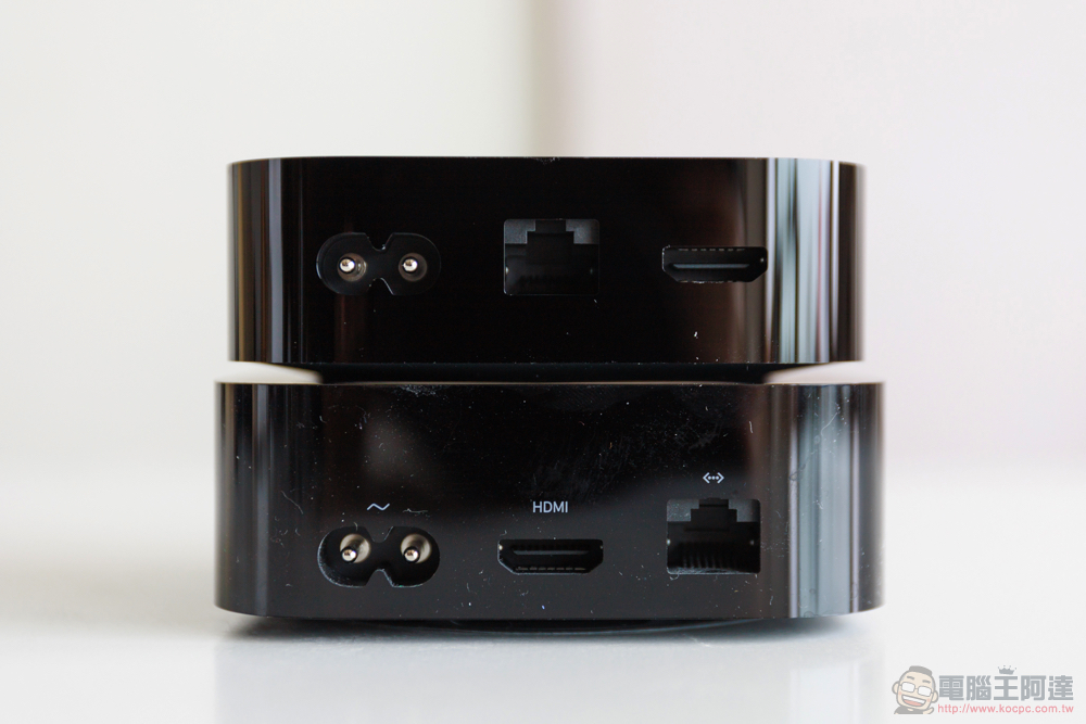 不僅底部少了蘋果的 Logo,正面新款也少了 TV 字樣,整台機身看起來更為簡潔 - 可能對於減重也有幫助 :