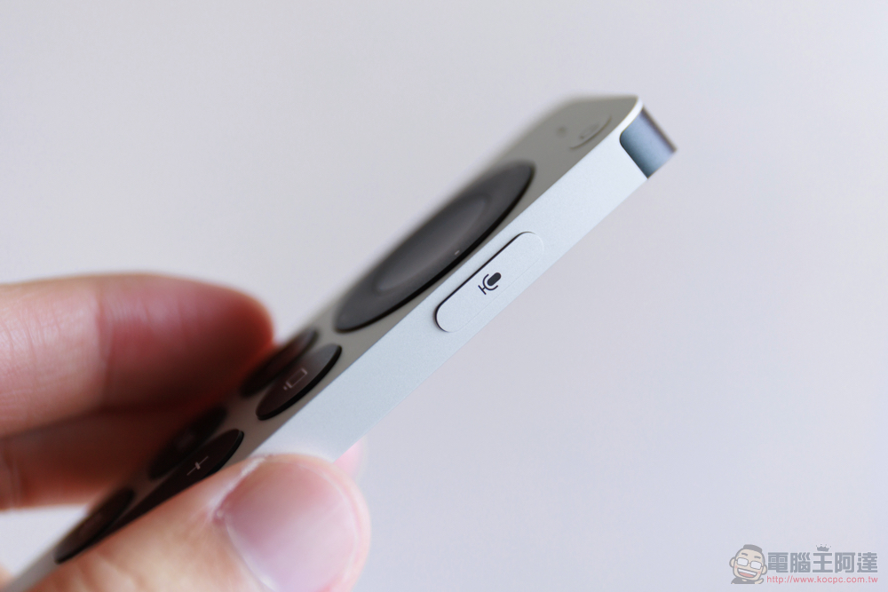側面則是有 Siri 語音助理按鈕,可以直接透過遙控器上的麥克風聲控 - 雖然自己因為搭配 HomePod 使用可以直接「Hey Siri」所以基本上都忘了這顆按鈕的存在: