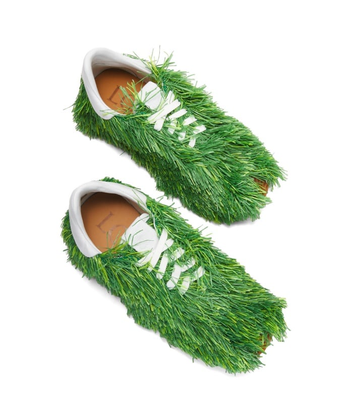 去年LOEWE品牌創意總監Jonathan Anderson打造的2023春夏大秀上名場面就是與藝術家Paula Ulargui Escalona合作推出的「種草系列」單品,伸展台上Model們身穿額全系列服裝與鞋款上都以真的草裝飾,大秀後品牌透過品牌發布可以得知,所有服裝上看到的草都是在時裝秀開始的前20天在巴黎郊外的大棚中播種並直接在面料上發芽而來,就在最近這款鞋終於以正式的外型開賣。
