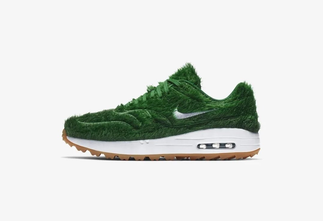 其實草皮鞋已經不是第一次出現,過去Nike為了2019年美國職業高爾夫球「PGA巡迴賽」,推出了一款「Nike Air Max 1 Golf“Grass”」鞋款,在Air Max 1的鞋面、鞋舌上鋪滿立體「綠色草皮」呈現高爾夫球場的樣子,只是LOEWE這一款的草更加奔放(笑)