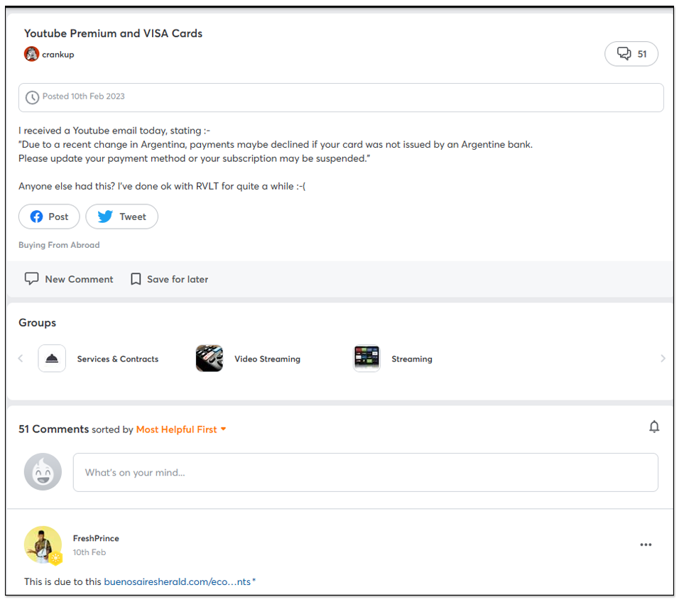 無論如何,現在看起來收到這封信的用戶都是使用 VISA 信用卡,MasterCard 沒事,因此阿根廷 YouTube Premium 訂閱戶應該先不用太擔心,可能真的只是這個事件導致,而不是政策改了。