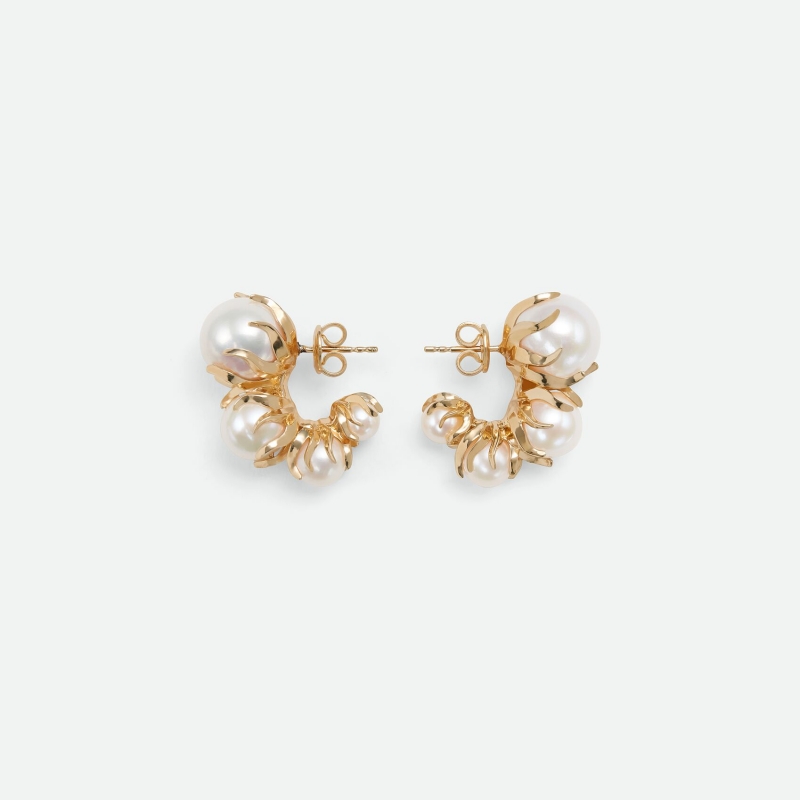 Bottega Veneta這一季早春系列中的飾品相當有看到,不只有一對金屬的圓弧耳環相當吸睛,更把珍珠當作素材,做成像是“碗豆”的圈型耳環,在優雅中顯示不同的穿搭品味!(價格:NT$45,700)