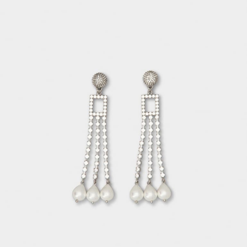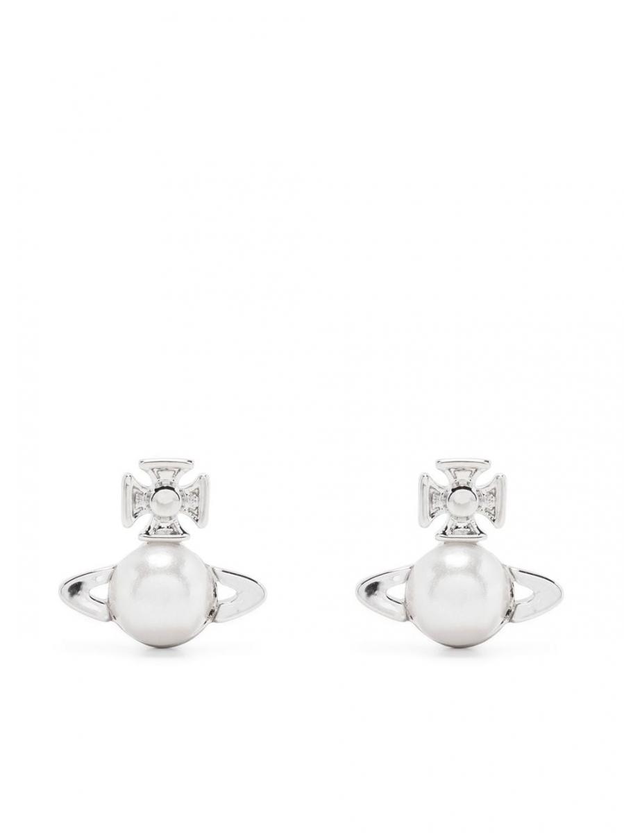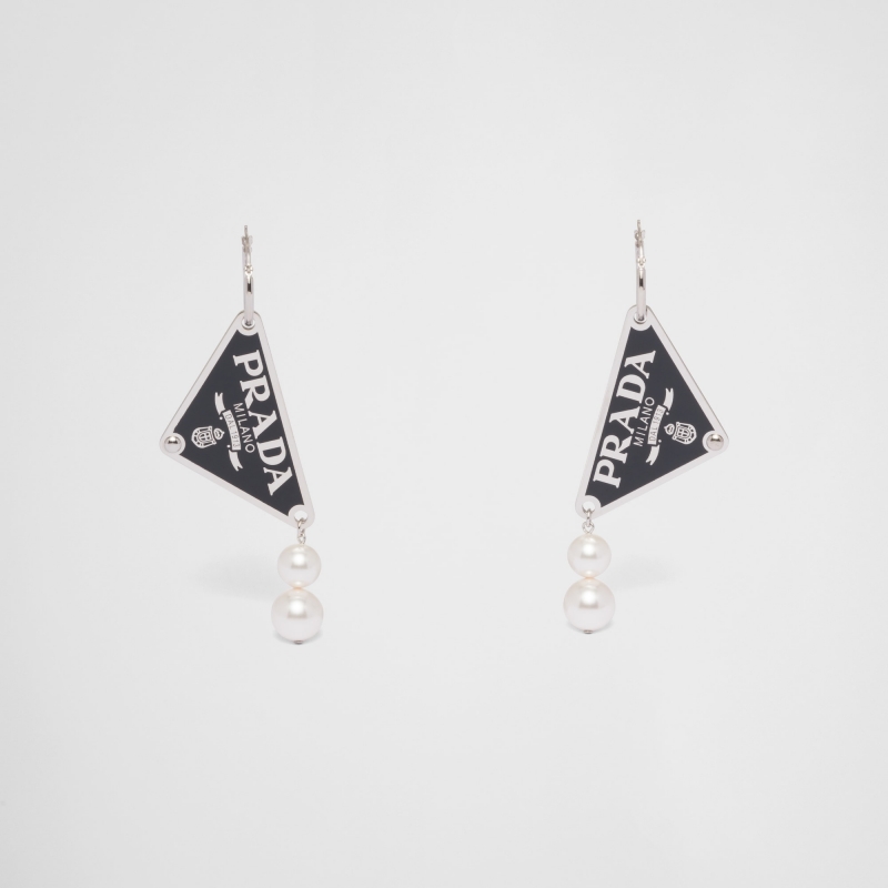 平時Prada給人高冷的形象,真沒想到它也有珍珠耳環的款式,秉持品牌的調性,這款同樣帶有酷帥感,把三角鐵牌的Logo搬上檯面,銀色的金屬細節跟珍珠的銀白色光澤相當呼應!(價格:NT$46,000)