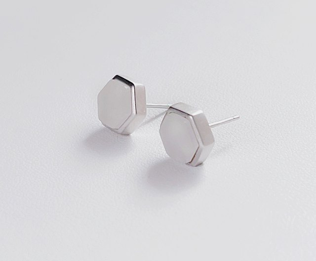 推薦8:璞珍系列_天然和田白玉925純銀六角耳環