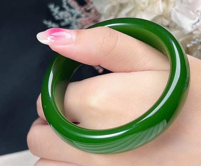 和闐玉溫潤而雅致的獨特氣息,使它成為人人亟欲收藏的熱門玉種。其本身含有人體所需的微量元素,長期佩戴的話,可達到安定心神及促進血液循環的效果。這款手鐲擁有典雅的外型,散發出的碧綠光澤更是不凡品味的展現,搭配各式穿搭皆不突兀,有意購入手鐲類產品的讀者們不妨多加參考。