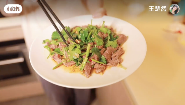 在《聽說你喜歡我》劇中裡,有不少阮流箏為愛學習下廚的場景,而現實生活中,王楚然的廚藝也很好,她特別拍過一個影片,分享一道減脂餐料理「香菜牛肉」,還親自教學整個烹煮步驟。吃起來不僅美味,還能攝取好的油脂,如果不喜歡吃香菜的妞妞,可以自行換掉其他的蔬菜喔!