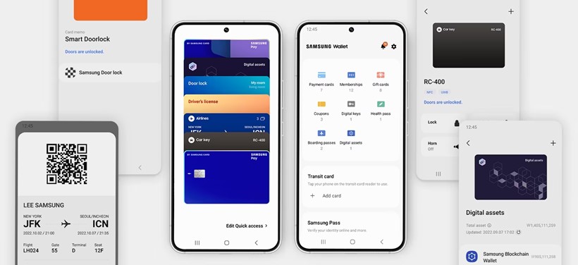 「Samsung Wallet」是三星針對Galaxy手機所推出的行動支付應用程式,融合且增強 過去的Samsung Pay 和 Samsung Pass 的功能,可以放入多張信用卡、會員卡,只需向上滑開手機螢幕,即可使用銀行卡、會員卡、悠遊卡、數位鑰匙、登機證及疫苗接種數位證明等服務,同時也能透過Samsung Pass服務存放使用者在不同網路服務使用帳號密碼,讓使用者能快速登入各類線上服務。