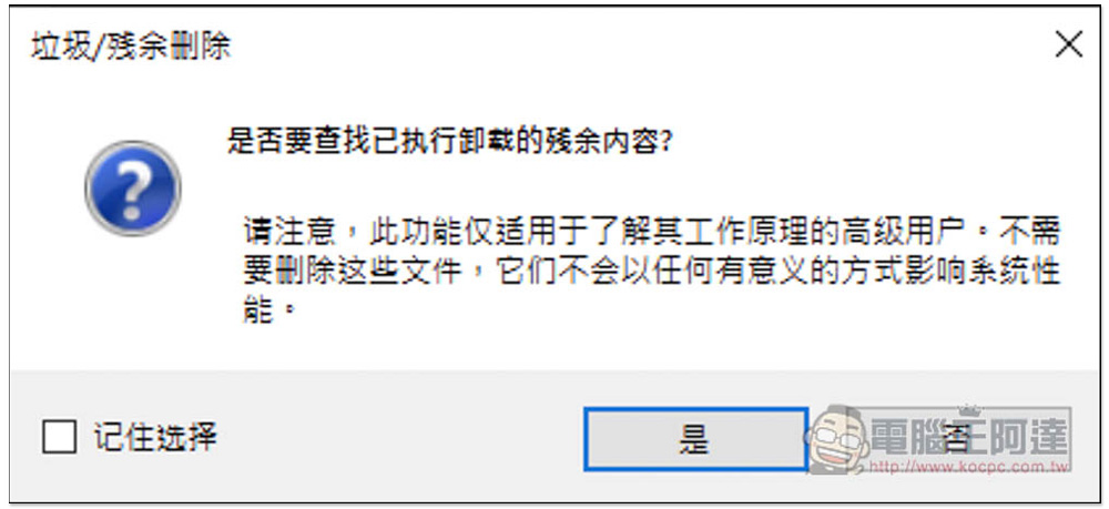 也提供刪除殘餘內容,不過不是一定,也建議了解工作原理的用戶再操作,避免影響系統效能:
