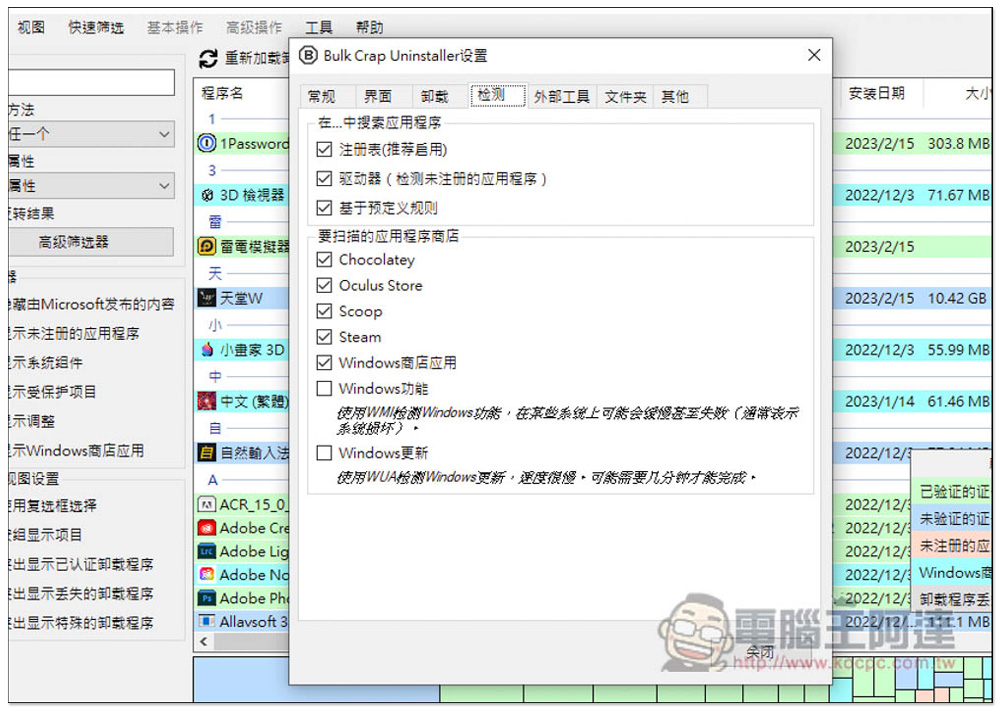 Bulk Crap Uninstaller 應該是目前最強的移除工具,免費開源、可掃描免安裝軟體