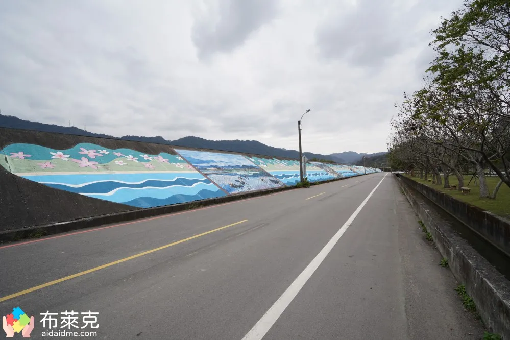 這張是在三坑自然生態公園拍的,當時看到這個彩繪河堤就覺得很吸睛,畢竟上面畫得很細緻,於是就有這張相片了。全部景色都收錄了,這就是廣角鏡頭的好處。