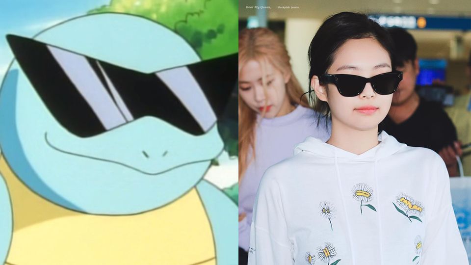 傑尼龜老大的墨鏡跟其他小弟不太一樣,網友發現Red Velvet的瑟琪之前戴過一個圓眼鏡,跟Jennie擺在一起,根本是傑尼龜家族出巡!