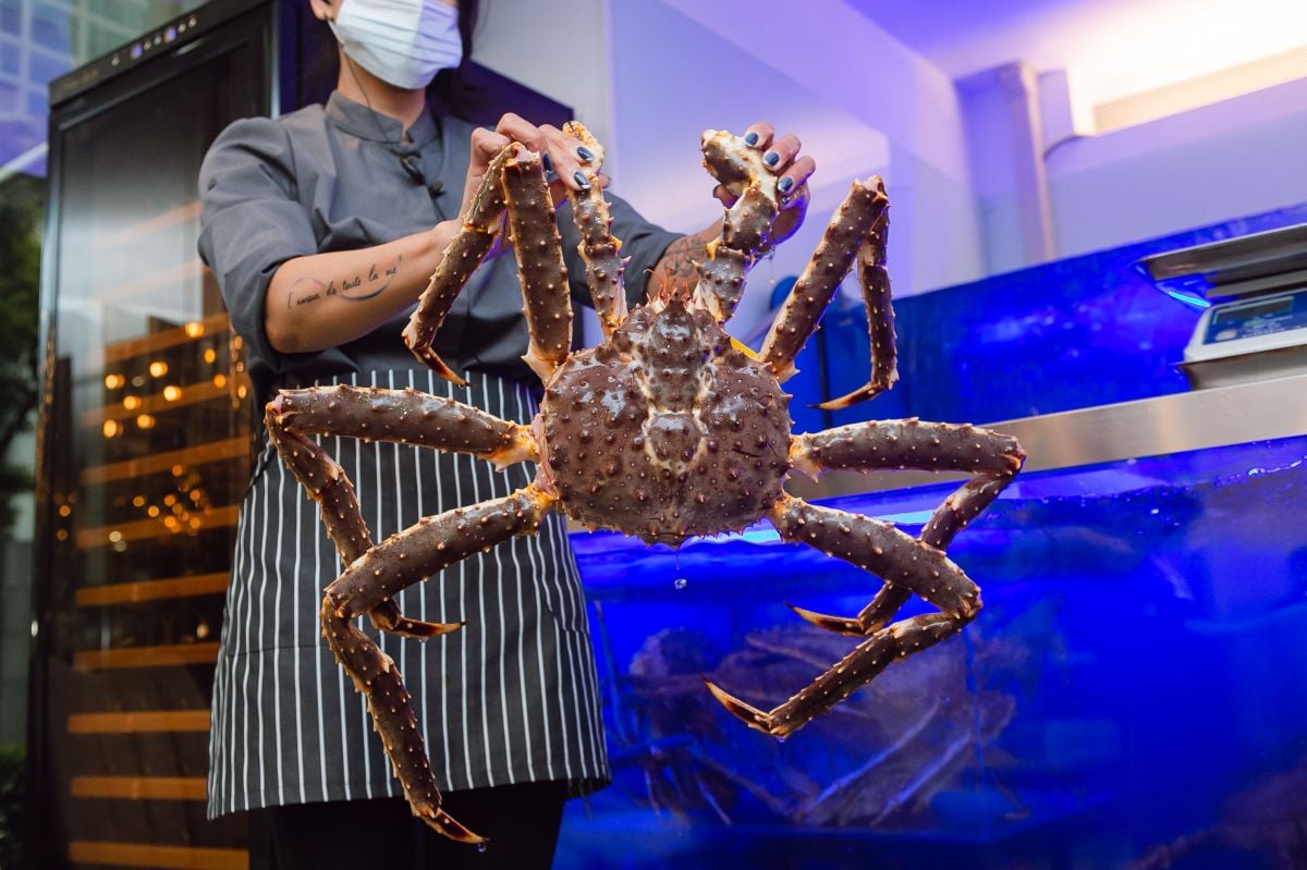 澎派海鮮餐廳首創帝王蟹「一蟹多吃」的料理方式,有火鍋、清蒸、火烤、蒜蓉、香辣、金沙、麻婆、剁椒、水煮、鹹酥、避風塘共11種料理方式可供選擇,只要現場點一隻大約7到8斤的帝王蟹,不僅能做到四種吃法,還有特殊神秘料理「帝王蟹膏滑蛋」直接送給大家,等於「一蟹五吃」。