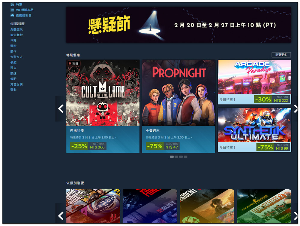 2023 年 Steam 特賣主要可以分成三大類型,「主要季節性特賣」、「主題特賣活動(遊戲節)」與「新品節」。