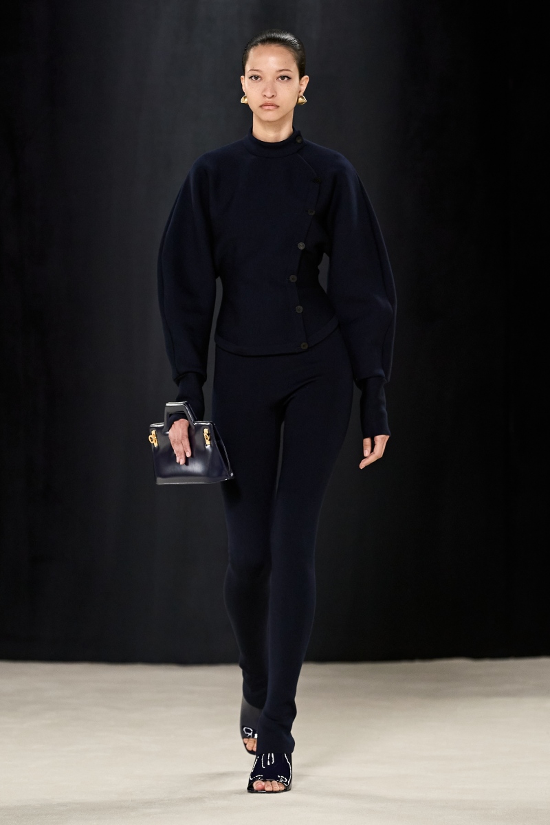 創意總監Maximilian Davis在Ferragamo的第一場大秀,已經給了時裝迷一帖回春藥,而第二場則可以說是來了一劑強心針,證明自己並不是曇花一現,從大衣、套裝上具有結構感的的廓形,來自50年代經典的繭型剪裁,從服裝側面、背面看起來的立體感,把設計元素化繁為簡,不需要喧喧鬧鬧,都是創意總監的設計硬底子。