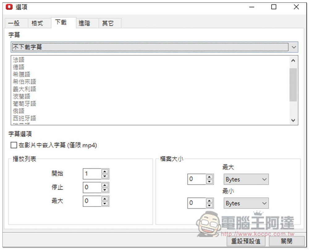 也能下載字幕,預設不會下載,如果你想要的話可以打開並指定語言。這款還能直接跟 MP4 影片合併,這點蠻不錯的: