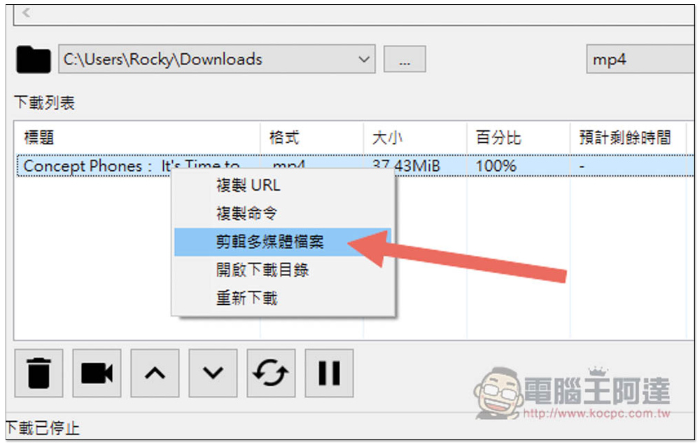 這款還提供簡易的剪輯功能,在下載好的影音檔上打開右鍵選單會看到 "剪輯多媒體檔案" 功能: