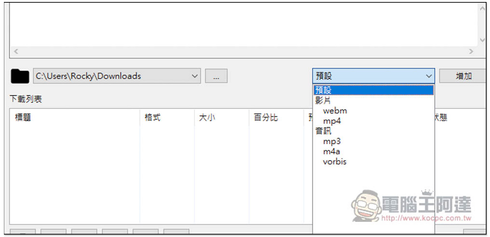 一開始建議先設定好下載儲存位置,預設會儲存在使用者資料夾底下,這位置蠻奇怪的。格式部分等你要下載時再調整即可: