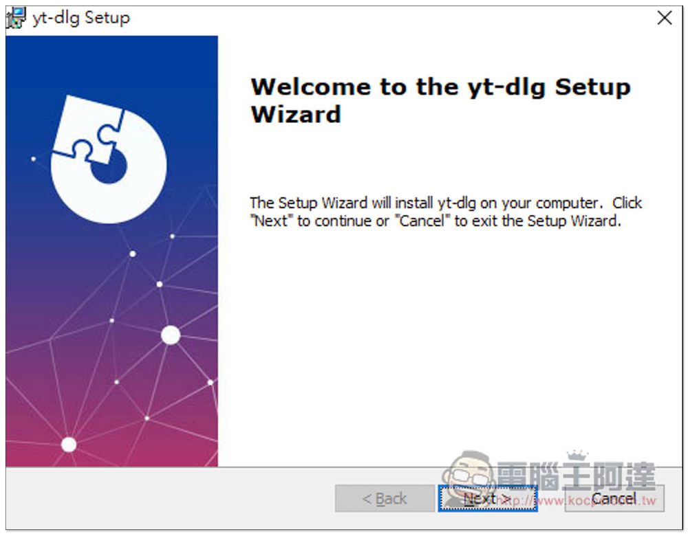 yt-dlg 的安裝檔在官網尚可以下載,也有上架於微軟商城,看你要從哪邊安裝都可以。安裝過程沒特殊需求的話,一直按下一步即可。另外過程雖然都是英文,但安裝完後會變成繁體中文,所以不用擔心看不懂: