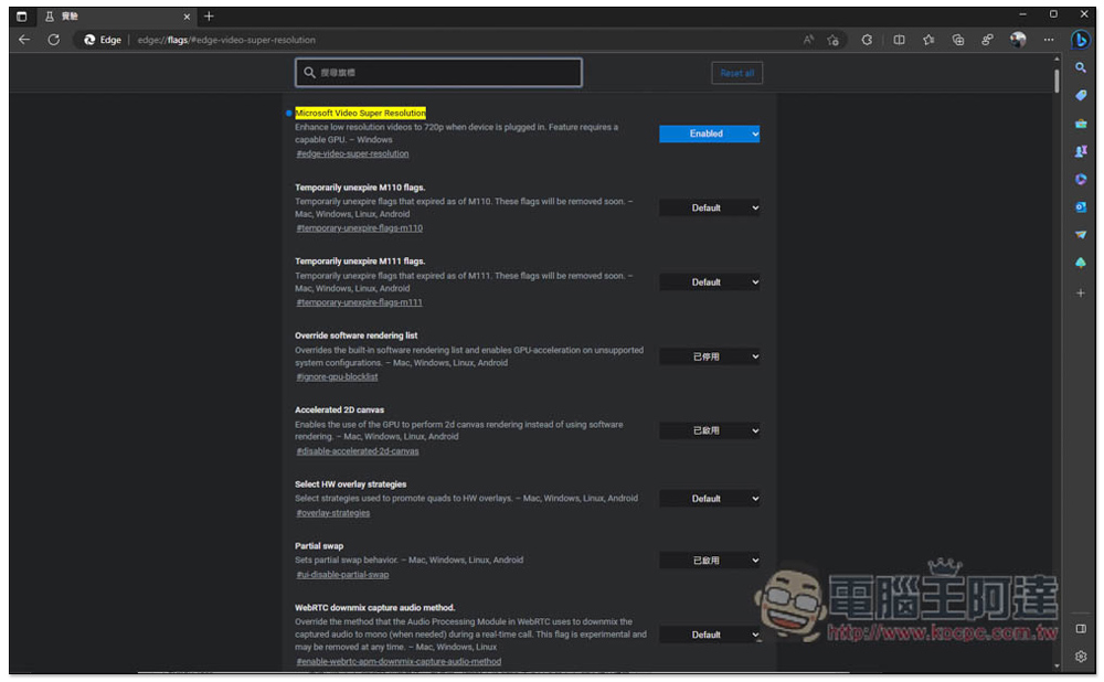 教你啟用 Microsoft Edge 內建提升影片解析度功能