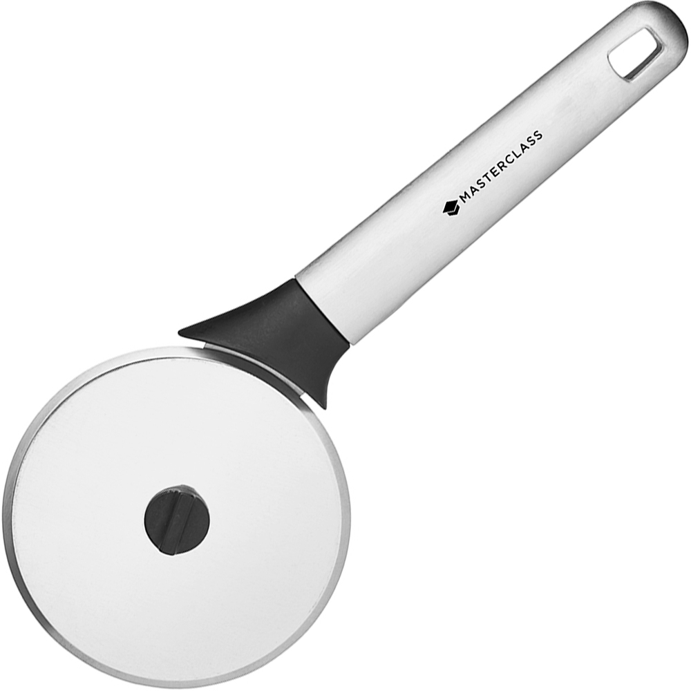 Master的披薩輪刀,使用上快速又省力,圓潤的握把握取舒適,而輪刀上也有擋柄的設計,避免在切割的時候不小心傷手,甚至可以避免切割時,食材會黏住刀鋒導致食材捲起沾手。而握柄的後方有孔洞,方便吊掛收納。